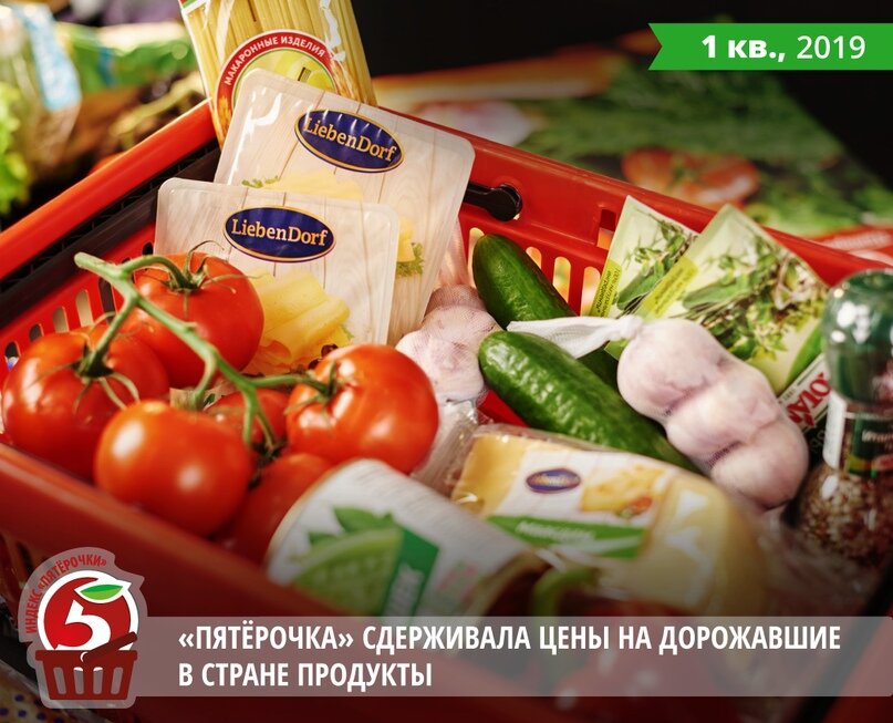X5 Retail Group представляет индекс «Пятёрочки» за первый квартал 2019 года. В январе-марте стоимость минимального продовольственного набора в среднем по стране составляла 4 116 рублей, следует из данных Росстата. В Москве аналогичная корзина стоила порядка 5 055 рублей, в Санкт-Петербурге – 4 916 рублей. В этот же период базовый набор продуктов в «Пятёрочке» можно было купить в среднем за 4 112 рублей в универсамах сети в Центральной части России, на Урале и в Сибири, за 4 632 рубля в столичных магазинах и за 4 610 рублей в петербургских. Таким образом, в первом квартале индекс «Пятёрочки» находился на уровне 100%, 92% и 94%, соответственно. В целом, первые три месяца года характеризовались ускорением инфляционного давления в продовольственном секторе до 5,8%, свидетельствует официальная статистика. Наиболее активно в начале года дорожали сахар (+29,5% к показателю первого квартала 2018 года) и яйца (+19,3%), указано в материалах Росстата. В то же время в «Пятёрочке» яйца в марте по
