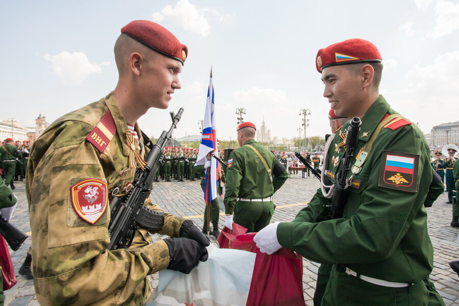 7 мая в Москве на Васильевском спуске в день генеральной репетиции военного парада, посвященного 74-й годовщине победы в Великой Отечественной войне, военнослужащие парадного расчета Росгвардии обменялись памятными сувенирами с военнослужащими Министерства обороны. В честь завершения совместной подготовки к Параду Победы росгвардейцы вручили сувениры десантникам 331-го парашютно-десантного полка из Костромы, морским пехотинцам 336-й бригады морской пехоты Балтийского флота и 61-й бригады морской пехоты Краснознаменного Северного флота, а также военнослужащим сводного парадного расчета военной полиции Министерства обороны РФ. Эта традиция зародилась несколько лет назад, и является ярким подтверждением нерушимости братских отношений между представителями разных родов войск.