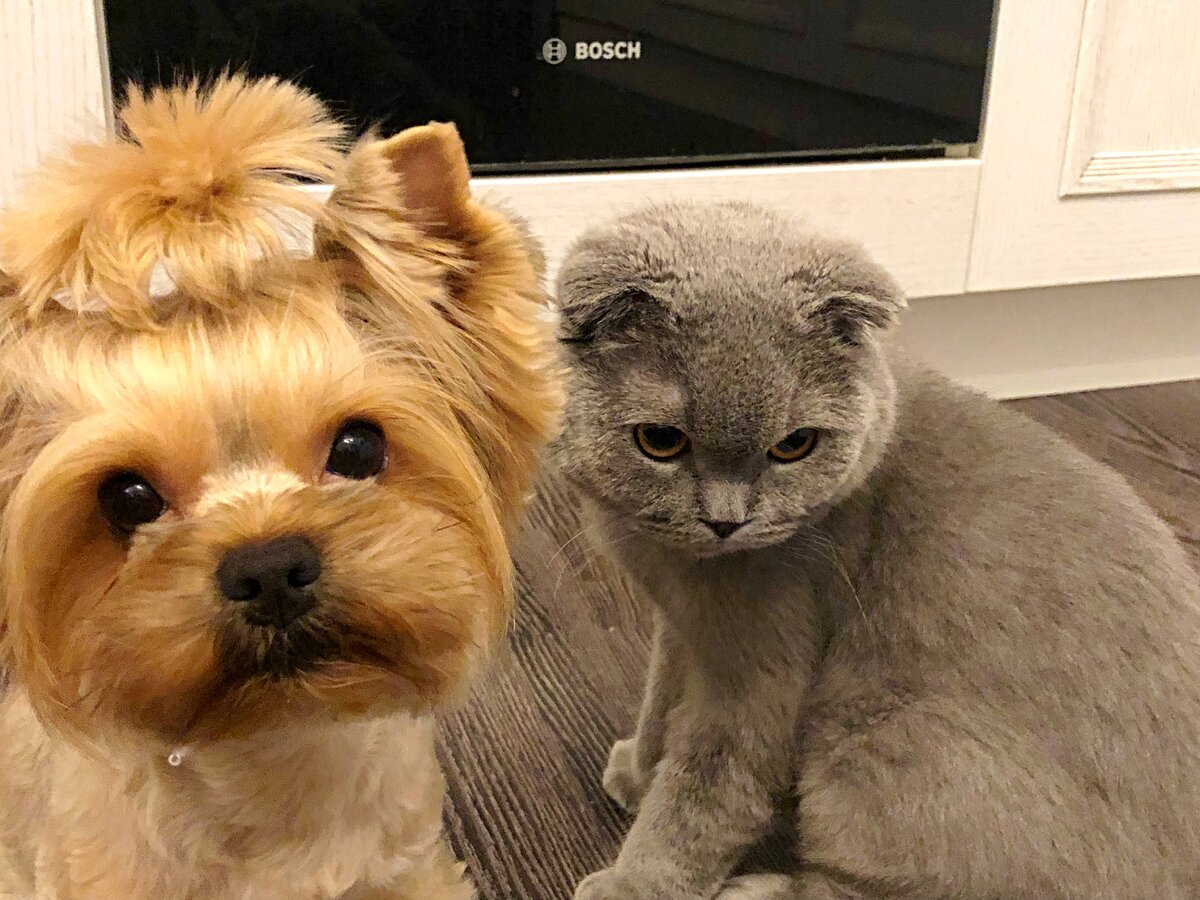 Ну начну с того ,что мой муж любит собак а я котов,ну или можно сказать любую живность. Кота я завела первого, а через год завела йорка. Мне повезло что порода кота (шотландский вислоухий) оказалась очень спокойная , и он практически на второй день воспринял собаку как что то интересное. Даже эгоистичные представители этой породы все равно обладают мягким нравом, проявляя агрессию только в том случае, если они вынуждены защищаться. А так очень дружелюбный кот. На этом видео яркий пример как кот пытается отстоять свою территорию , хотя лежанка собаки. Вынуждена констатировать что коту оказалось намного веселее. Если мы уезжаем на пару дней ,то кот скучает ,это я понимаю потому что по возвращению он выбегает обнюхивает собаку ,трогает лапой и что то мурлычит. Хотя собака ревнивая , но все же скрипя зубами принимает эту дружбу. Да и еще все бесево между ними происходит примерно после 23-00. Правда как начинаешь снимать все интересное заканчивается .Так что по ночам у нас весело.Ко