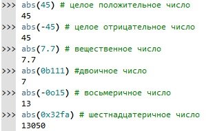 В случае комплексного числа – возвращается модуль комплексного числа.