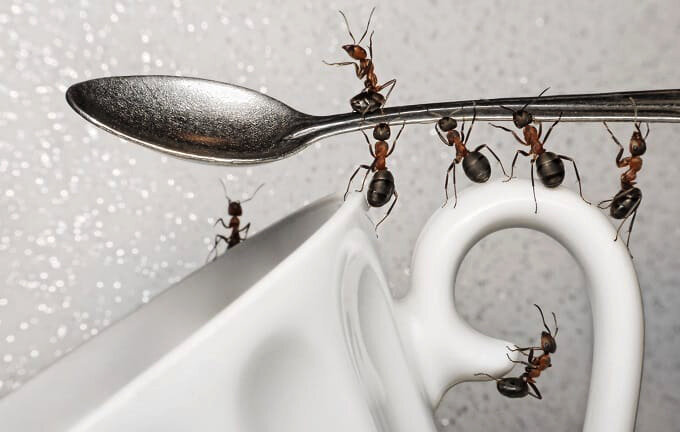 В основном муравьи появляются на кухне где вы кушаете и у вас довольно часто падает крошки на пол. И так что делать если в вашем доме появились муравьи и как с ними бороться? Нам понадобится ведро, 3-4 литра воды, Аммиак, резиновые перчатки и любая тряпка.Открываем баночку с нашатырным спиртом и добавляем его в ведро с водой и хорошо перемешиваем. Перед обработкой надо убрать те места где появляются муравьи чтобы там не было не соринки не крупинки. Как убрали место обитания муравьем, одеваем перчатку на руку и смачиваем тряпку в ведре где у нас ранее было разбавлена вода с аммиаком и хорошо протираем те места, где живу муравьи или ранее были заметны маленькие грызуны. Нашатырный спирт имеет очень специфический и резкий запах, а муравьи как известно не любят резкие запахи и потому они уходят и больше не будут вас беспокоить. Если вдруг вы увидели что муравьи нашли новую лазейку, нужно незамедлительно убрать все крошки с того места и тщательно протереть их гнездо и там где они ходили и п