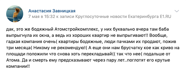 1. Комментарии "активистов" пышут ненавистью к "Атомстройкомплексу". Компанию обвиняют буквально во всём, включая самоубийства владельцев квартир,
