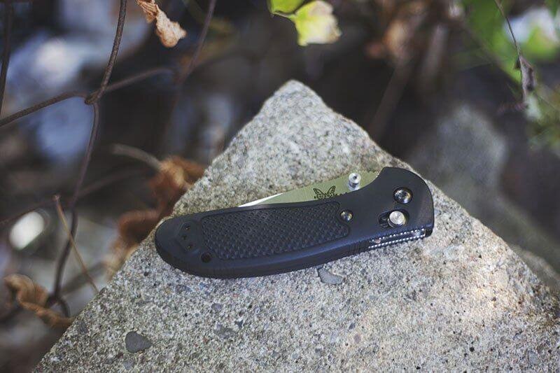 Griptilian является оплотом среди складных ножей в каталоге Benchmade в течение многих лет. За это время он успел зарекомендовать себя как превосходный EDC нож. Это очень практичный нож для повседневного использования, доступный в широком многообразии разных вариаций. От разных размеров самого ножа до разных вариантов клинков, цветов рукоятки и финишного покрытия. Когда я впервый взял в руки Griptillian, то первое на что я обратил внимание это его вес. Для EDC ножа 108 грамм хороший вес, особенно если принимать во внимание его массивный клинок. Общая длина Benchmade Griptillan составляет 20,3 см. Длина клинка 8,8 см. Не смотря на довольно толстый обух прямая геометрия клинка обеспечивает хорошее качество реза. Рукоятка у Griptillian изготовлена из Noryl GTX. Если честно, я не особо знаком с этим материалом. Для меня это пластик. К сожалению в отличии от пластика на Spyderco Endura создается впечатление, что это какой-то более дешевый материал. Шпенек, который помогает открыть лезвие