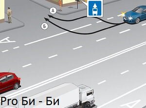 Здравствуйте дорогие читатели и гости канала Pro Би-Би! Сегодня с Вами разберем еще один вопрос из экзаменационного билета. Вопрос простой, но все равно совершают ошибку. И мы сегодня его разберем. По какой траектории водитель может повернуть направо? Водитель хочет повернуть направо. Крайняя правая полоса предназначена для маршрутных транспортных средств, об этом сообщает знак. По траектории Б мы не можем повернуть, т.к. имеется сплошная линия. Заезжать на автобусную полосу можно лишь в том случае, если она отделена прерывистой линией. Если автомобиль поедет по траектории А, то нарушений правил никаких не будет. Значит правильный ответ: По траектории А. Наша команда надеется, что помогла Вам с этим вопросом справиться, и на экзамене у Вас не возникнут трудностей. Если статья была полезной, то делитесь этой новостью с друзьями. Так же ставьте "палец вверх" и не забывайте подписываться на наш канал. Дальше будет еще очень много интересного!