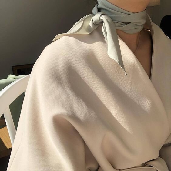 В последние годы четко прослеживается тенденция к простоте и минимализму - стали популярны total look, свободные силуэты и минимум отделки на одежде. С одной стороны - образ выглядит современным и "чистым", если можно так выразиться, но с другой - если не добавить хотя бы одной интересной детали - он будет попросту скучным... И здесь нам на помощь придет простой шейный платок - один из самых бюджетных способов разнообразить свой стиль, сделать образ более сложным и запоминающимся. СПОСОБ 1. НОСИМ НА ШЕЕ Вариант классический, распространенный, но по прежнему работающий на все 100%. Они образуют вертикаль, вытягивают силуэт и делают нас выше и стройнее . Таким же способом можно освежить старое платье - набрасываем на плечи контрастный тонкий шарф/платок и фиксируем его ремнем на поясе. Такой способ ношения платка сегодня смотрится намного интереснее стандартных тонких чокеров из магазина. А чтобы платок выглядел аккуратнее - сворачиваем его предварительно в ленту-галстук. СПОСОБ 2. Н