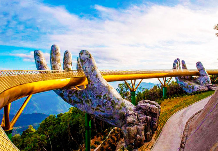 Всем Дискавери, дорогие Друзья! В нашем мире существует множество невероятных и красивых мест, которые стоило бы посетить, но человеческая жизнь слишком коротка, чтобы это сделать. Так какие же места лучше всего посетить за свою жизнь? Давайте разбираться! Если вам понравится данная статья, то пожалуйста поставьте ей лайк и подпишитесь на Блог, готовлю очень много материала, будет интересно! ТОП 5 мест, которые нужно посетить: 5. Золотой Мост Во Вьетнаме хватает туристических достопримечательностей, и одной из них является Золотой Мост в городе Дананг. 150 метровый мост, который заслуживает, чтобы на него взглянули, даже если вы скептически относитесь к посещению мостов. Дело в том, что это конструкция, которая держится на 2 огромных каменных руках, расположенных вдоль края горы Ба на на высоте 1400 м. над уровнем моря! С моста открываются виды на великолепные холмы, долины и леса. А вдоль дорожки на мосту высажены цветы Лобелии. Золотой мост стал частью программы по привл