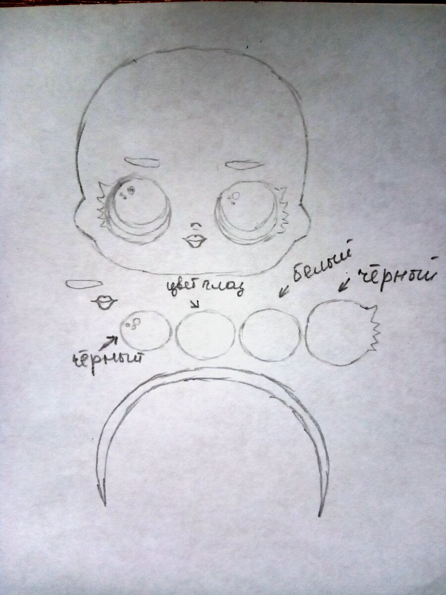 Затем принялись за глазки. Сначала самую большую чёрную часть с ресничками.