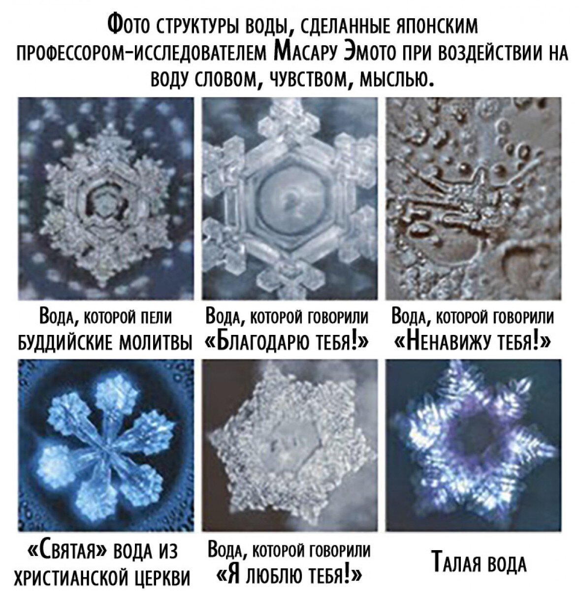 Вода, основная составляющая нашего организма. И вот при помощи неё мы можем изменить свою жизнь. Так как от структуры потребляемой воды зависит и состояние нашего организма. Ритуал прост!!! Каждый из нас, каждое утро выпивает чашечку кофе, чая, стакан кефира или просто стакан воды. И в наших силах изменить структуру выпиваемой жидкости. Мы можем наговорить, даже мысленно, нашему напитку необходимую информацию. Если мы хотим здоровья, значит нужно направить наши мысли на исцеление, с визуализацией на наш напиток. Взяли напиток в ладони, медленный вдох... и на выдохе отдаем энергию с положительным настроем нашему напитку. Например - "Я наполнен(а) энергией и спокойствием. Моё тело исцеляется (можно конкретизировать). Я наслаждаюсь легкостью и здоровьем. Каждая клеточка моего организма наполняется теплом и любовью. Я здорова." Если нам необходимо достичь цели, решить проблему и т.д. то и настрой будет другим. Пример - "Мой мир любит меня. Мой мир заботится обо мне. Все необходимое мне