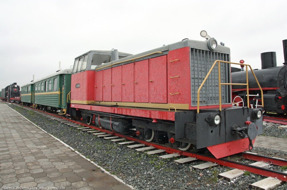 В самом дальнем углу музейной площадки притаился танк-паровоз 9П-18430. 1954 года рождения, сделан в Муроме, и прибыл в музей с Экспериментального кольца ВНИИЖТ в подмосковной Щербинке: