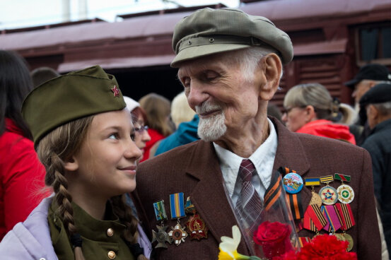 Дорогие наши ветераны! Ценою ваших седых волос нам досталась эта победа. Благодаря вашему подвигу, мы живем в свободной стране. Мы помним и ценим ваши старания. Дорогие наши, мы желаем вам забыть как страшный сон тот звук и свист летящих бомб, то время страшной суеты, голода и холода. Пусть сердце ваше больше не боится, а только сладко и спокойно спится.