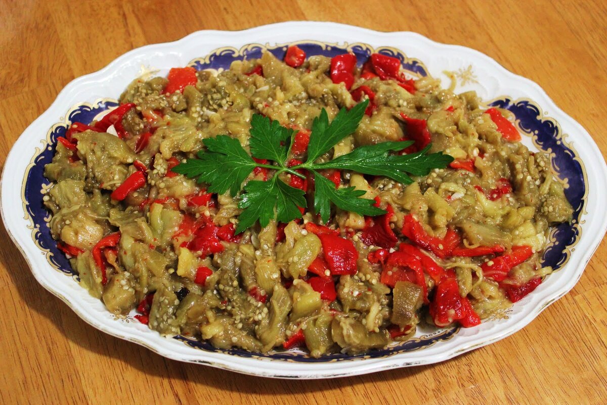 Салат из печёных баклажанов (közlenmiş patlıcan salatası)