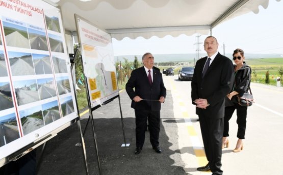 Президент Азербайджана Ильхам Алиев и его супруга и вице-президент Мехрибан Алиева 7 мая приняли участие в церемонии открытия автомобильной дороги Гобустан-Поладлы. Они выяснили, как проходило строительство дороги и что именно принесет региону эта транспортная артерия. Об этом SNG.Today сообщили в пресс-службе первого вице-президента Мехрибан Алиевой. Дорога между Гобустан и Поладлы была построена по распоряжению лидера республики от 2018 года. Из государственного бюджета на постройку выделили 6,4 миллиона манатов. Теперь эта дорога протяженностью 14,5 километра и шириной в 6 метров соединяет сразу 6 населенных пунктов, в которых численность населения достигает 5 тысяч человек. Кроме дороги, в этой местности также установили 7 водоотводных труб дорожные знаки, указательные щиты, сигнальные столбы, нанесена дорожная разметка. Дорога Гобустан-Поладлы позволит местным жителям ездить в любом направлении выезжать на трассу Баку-Шамахы-Евлах. Реализация проекта, наряду с обеспечением б