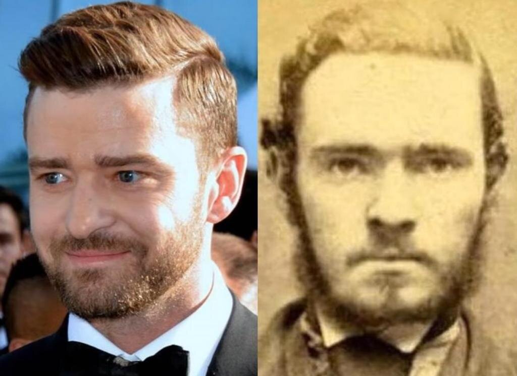 Посмотрев на фото Джастина Тимберлейка и неизвестного преступника, сложно не заметить, что они удивительным образом похожи. Возможно, этот парень был предком известного певца.
