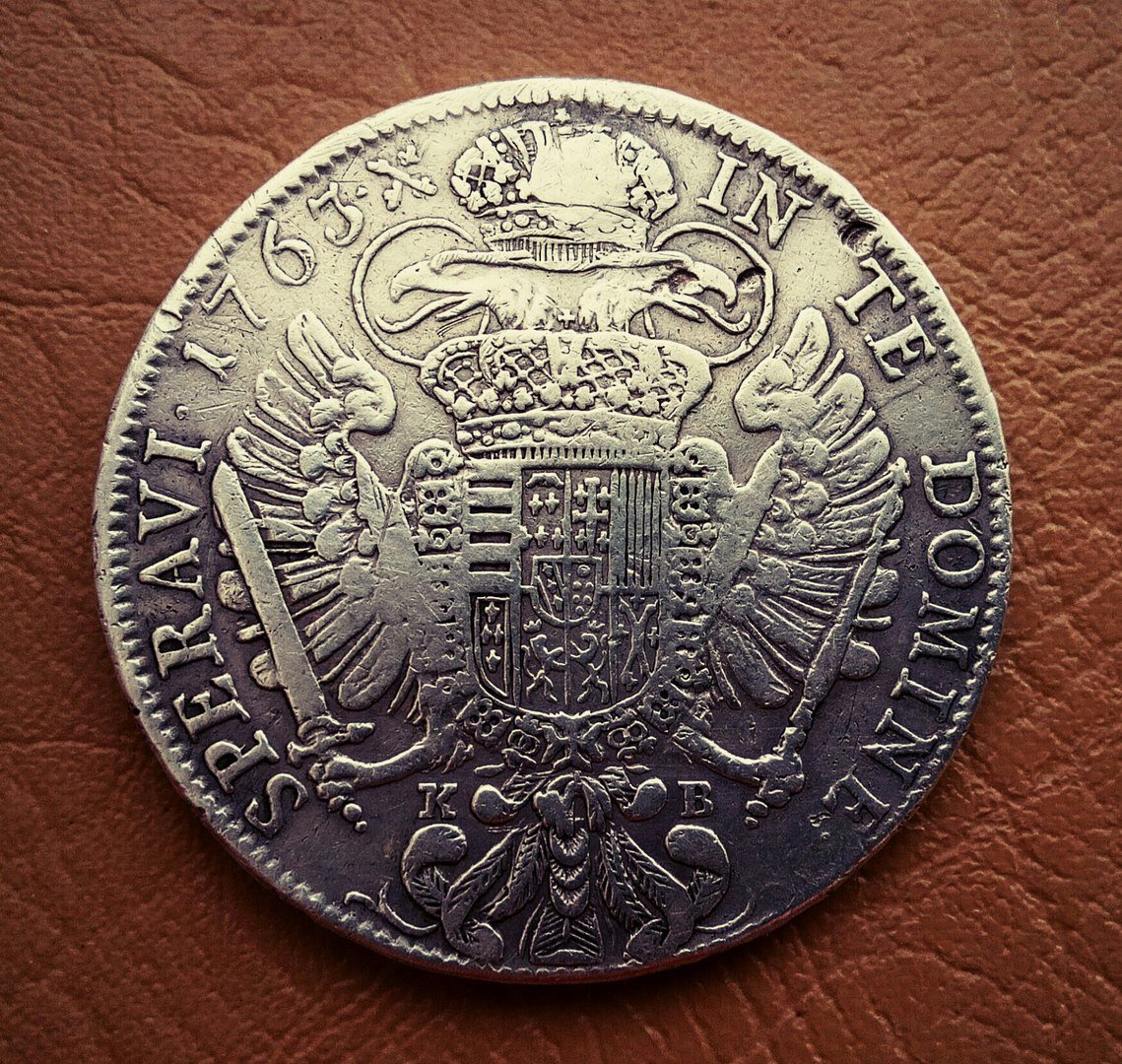 Хочу представить Вам еще одну монету моей коллекции - Австрийский талер 1763 года. Талеры ведут свою историю с XVI-XIX в., и использовались они в основном для международной торговли. Хотелось бы подчеркнуть, что талер это скорее общее название крупной монеты, нежели ее официальное название. К примеру, монета, которая представлена здесь, является разновидностью конвенционного талера. Своим названием монета обязана конвенции, подписанной в 1753 году, которая регулировала стандарты и качество монеты. И вновь мы возвращаемся к термину «монетная стопа». В основу монетной стопы была заложена Кельнская марка (233,855 грамма) и из этой массы серебра, согласно конвенции, изготавливалось 10 талеров. Таким образом, чистого серебря в 1 талере было 23,38 грамма, а общая масса монеты - 28,06 грамм. В результате получалась 833 проба серебра.