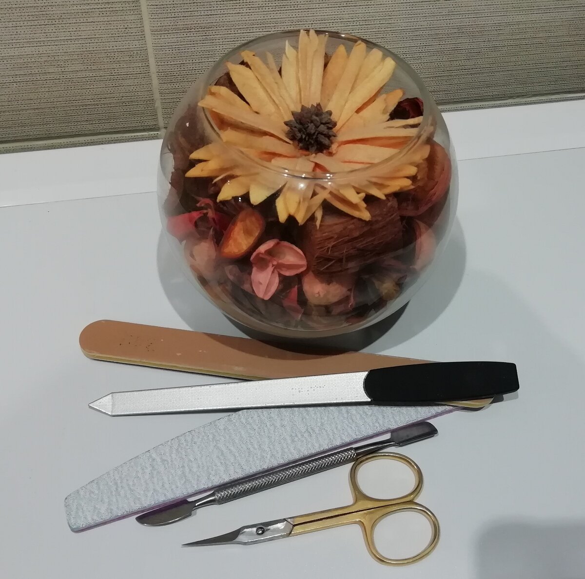 Я инструмент протираю спиртом перед использованием. На всякий случай, хоть я и делаю маникюр только себе.