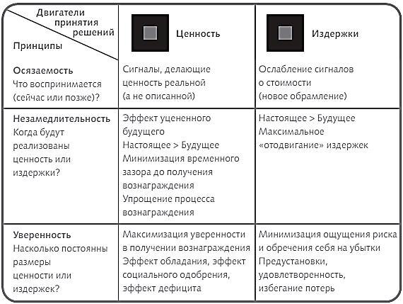 Особенность восприятия такова, что чем скорее мы получим удовольствие и чем более отдалены от настоящего момента издержки, тем лучше воспринимается предложение. Штраф, как и выигрыш следует налагать и соответственно вручать незамедлительно. Длительная рассрочка воспринимается как дополнительная ценность.