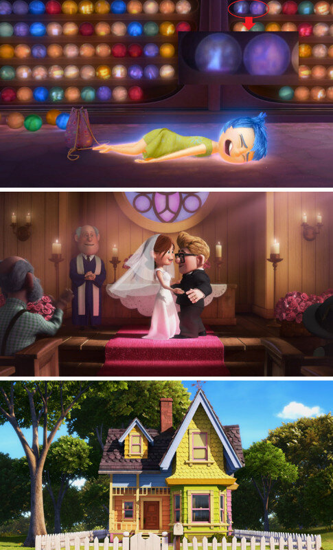 Многие мультфильмы я пересматривая по 10 раз, к ним не пропадает интерес. Они по настоящему качественные и имеют захватывающий сюжет, но еще в них есть скрытые детали, которые может заметить только дотошный зритель. Сейчас некоторые из них я вам покажу. «Головоломка» (2015) На одной из полок можно увидеть шарики с воспоминаниями, которые содержат в себе сцены из мультфильма «Вверх» (2009). В одном шаре — свадьба Карла и Элли, в другом — их дом «Моана» (2016) Одним из монстров, изображенных на гобеленах, является Маршмеллоу из «Холодного сердца». «Зверополис» (2016) В одной из сцен Ник говорит, что на поиски мистера Выдрингтона у них осталось 10 часов, и жестом показывает 8 пальцев. Джуди замечает несовпадение и на мгновение задумывается. «Тачки» (2006) В одной из сцен можно увидеть мух, которые на самом деле являются крошечными машинками с крыльями. Еще в этом же мультфильме горные хребты стилизованы под популярную в США достопримечательность — «Ранчо Кадиллак» «Тайна Коко»