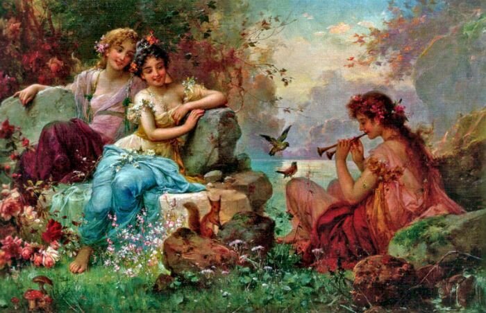 Ханс Зацка (Hans Zatzka) (годы жизни 1859-1945 гг.) — прославленный австрийский художник, который известен также под псевдонимами J. Bernard, P. Ronsard и H. Zabateri, является автором многих салонных картин на разные античные стилизованные сюжеты. С одной стороны, его картины возвращают нас к временам Питера Пауля Рубенса, и в то же время они напоминают стиль Камиля Коро. У Ханса Зацки есть много картин, которые условно названы «Свадебная мечта» с восторженными амурами и красивыми женщинами, также есть картины с мотивами спящей Венеры и множественными фигурками ангелочков. Такой чувственный женский образ в картинах у Ханса Зацки был сформирован еще в годы учёбы в Академии изящных искусств в Вене. Во время Первой мировой войны художник перешел от тематики росписей в церквах к написанию идеальных женских образов с разнообразными жанровыми сценками. Его полотна стали украшать сказочные амуры, нимфы и прелестные девушки. Ханс Зацка всегда писал картины без каких-либо эскизов, используя