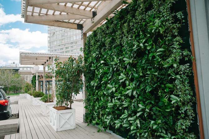 В центре Москвы на Новом Арбате появились «зеленые стены». Все лето они будут украшать улицу и очищать воздух вдоль одной из самых загруженных магистралей столицы. Это первый подобный проект уличного вертикального озеленения в столице. Для создания фитостен общей площадью 132 м2 на Новом Арбате использовано более двух с половиной тысяч живых растений двенадцати различных видов. Системы вертикального озеленения в мегаполисе – один из самых актуальных трендов мирового ландшафтного дизайна и градостроительства, идеальное решение для современного города, «растущего» вверх. Вертикальные сады и цветники, фитомодули и фитостены выполняют не только эстетическую, но и экологическую функцию: они эффективно фильтруют и очищают загрязненный воздух в условиях плотной застройки, помогают восстановить биоразнообразие, привлекая насекомых. Существуют различные технологии вертикального озеленения, применяемые в современном ландшафтном дизайне. Для создания фитостен на Новом Арбате,