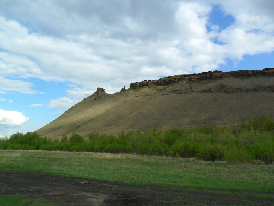 О том, что "Сундуки" - это не только красивая природная достопримечательность Хакасии, а место силы планетарного значения я немного знала, и всё-таки встреча с ними оказалась для меня неожиданностью. Название "Сундук" тюркского происхождения и обозначает место, где что – то содержится или хранится: вещи, бумаги, иконы, инструменты, продукты и так далее. "Сундуки" - это несколько скалистых и пологих холмов высотой от 150 до 5000 метров высотой, расположенные в степи Северной Хакасии, недалеко от селения Июс, где сливаются две реки, Белый и Чёрный Июс. Девять первых Сундуков представляют собой гряду в виде изогнутой линии или Змеи». Головой "Змеи" считается 1-ый Сундук (гора ОНЛО) , сердцем – 5-ый. Мы прибыли туда на микроавтобусе, чуть обогнув гору- каньон. фото автора Вид на "Сундук" сбоку Сила этого места прежде всего заключается в красоте природного ландшафта, а уже потом – всё остальное думала я, оглядываясь в полумраке. Чуть позже узнаю, что эта горная гряда носит статус культурн