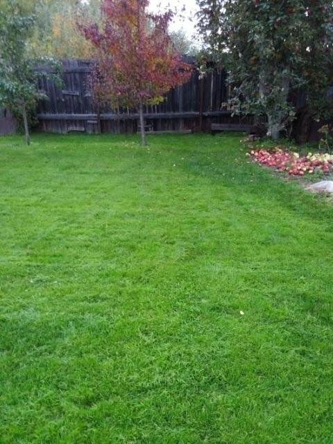 Но радовал нас газон только первый год. Какой он был красавец, я рассказывала здесь. В смеси семян для газона не менее 30 процентов составляли семена райграса. Эта быстрорастущая трава легко образует густой зеленый газон. Красивая мягкая травка. Ровная площадка. К концу лета после многократных стрижек газон выглядел так.