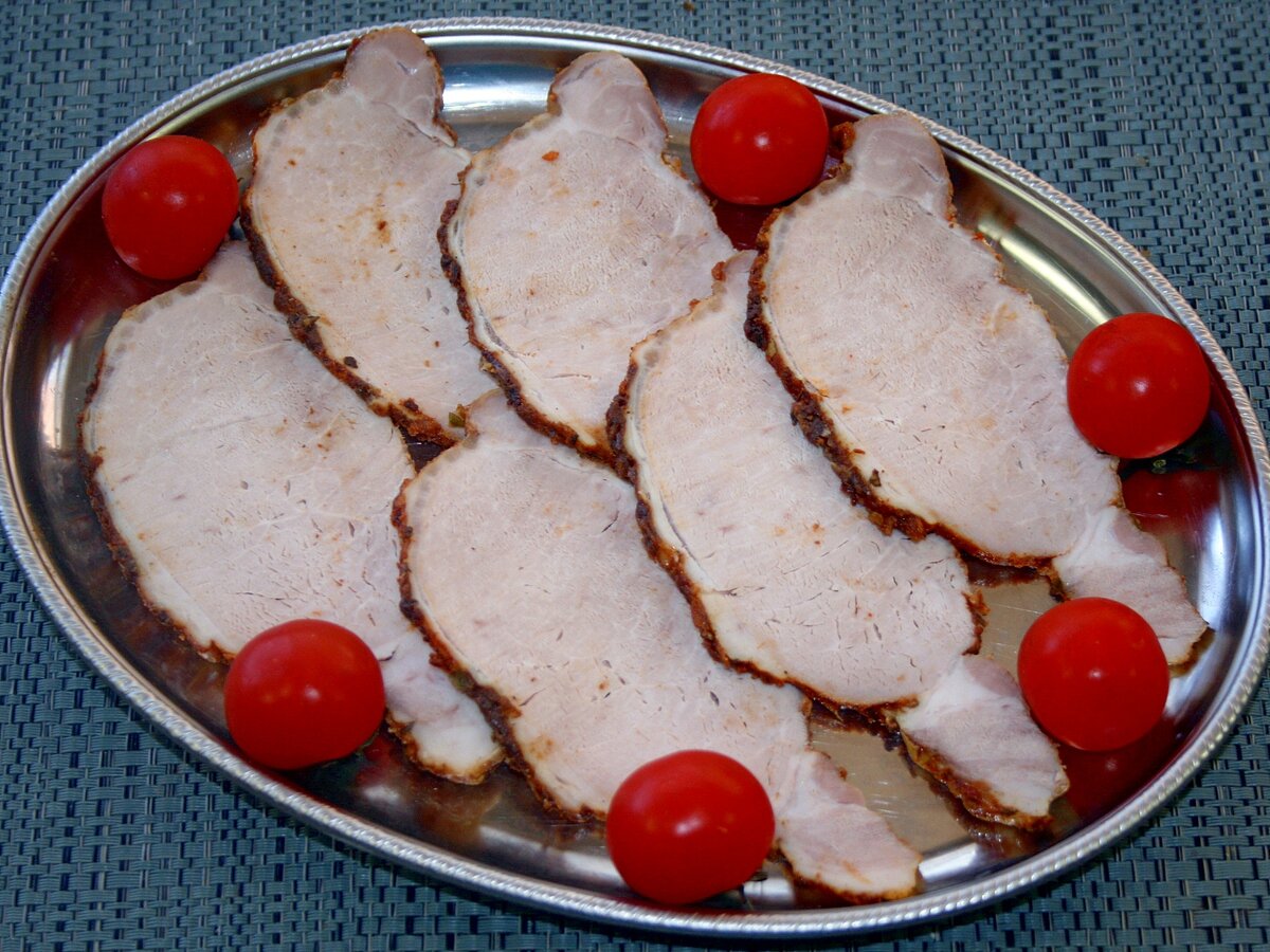 В прошлом тысячелетии не было такой разнообразной кухонной техники, как сейчас. В допетровскую эпоху всё готовили в русский печи. Мясо запекали целым куском. А чтобы оно снизу не подгорело и не тушилось в собственном соку, подкладывали берёзовые лучины. В настоящее время у нас много кухонных помощников, для которых можно с лёгкостью адаптировать старинные рецепты. Вместо русской печки будем использовать духовку с конвекцией. Вместо лучин возьмём бамбуковые шпажки. А большой кусок мяса заменим на увесистую часть свинины под названием «карбонад». Всё готово? Тогда начинаем! Карбонад «на палочках» в духовке Ингредиенты: 1800 г карбонада Посолочная смесь: 1 ст. л. приправы для мяса 1 ч. л. молотого красного перца 1 ч. л. молотой паприки 1 ст. л. соли 0,5 ч. л. сахара 2 лавровых листа 1 мелкая луковица 5 зубчиков чеснока Ещё нужно: 2 большие и 4 маленькие бамбуковые шпажки; 40 мл воды Приготовление: 1. В форму для запекания положить крест-накрест бамбуковые палочки. 2. Смешать все ин