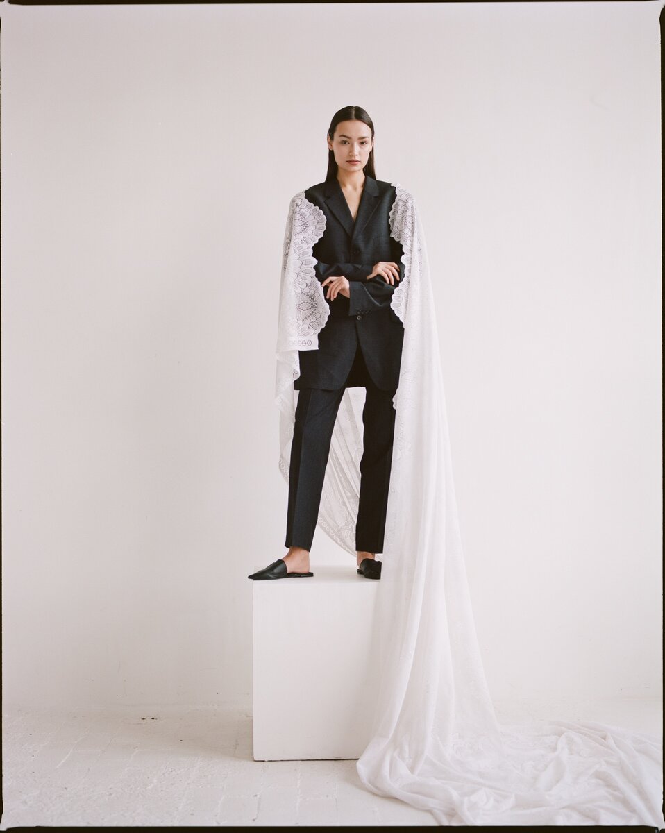 Сегодня расскажу немного об этой съемке. Фотограф Ania Discopigy, модель Вика, визажист Аня, стилист - я, Лиза Карих. Эта съемка проводилась в студии Prostranstvo на Электрозаводе, она - моя любимая. Начнем разбор по образам: Мужской пиджак Esprit и брюки из секонд-хенда. Вся эта съемка была сделана из вещей, которые я собирала повсюду, в основном покупала в секондах. Я решила поставить модель на куб и приколоть булавками бабушкину шторку, которую я забрала у нее из шкафа, к пиджаку. Таким образом, шторка грандиозно свисает и создает эффект мантии и величественности. Здесь у нас прекрасный светлый образ в стиле Old Céline. Брюки я тоже нашла у бабушки, это дядины. Обувь я купила в Mango специально для съемок и часто ее использую, она всегда делает образ дорогим. Кофту прикупила на распродаже в Terranova за 200₽, она часто нужна, так как белые вещи легко пачкать тональником, а эту кофту я могу стирать и использовать снова, чтобы не приходилось переживать за возврат. Перчатки я купи