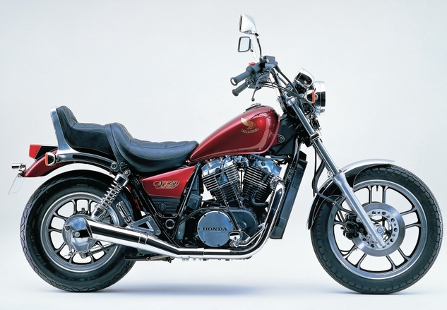 Honda выпускает высококачественную продукцию, которая может предложить многое как новичкам, так и тем, кто вернулся после перерыва в езде. Покупатель получит карданный привод, колеса на спицах, трехклапанный мотор с жидкостным охлаждением и классический вид круизера, который придают байку большое количество хромированных деталей и закругленные крылья. И что более важно – на топливном баке есть шильдик Honda, который гарантирует надежность и востребованность на вторичном рынке. 745-кубовый V-образный двухцилиндровый двигатель с углом развала 52 градуса ставился на различные модели Shadow начиная с 1980 года. Для него характерен один 34-мм карбюратор CV типа, что объясняет, почему этот мотоцикл самый скромный по мощностным параметрам. На байк установлен надежный карданный привод, а шасси, хоть и простое, как кирпич, оснащено задними амортизаторами с предварительным выставлением жесткос