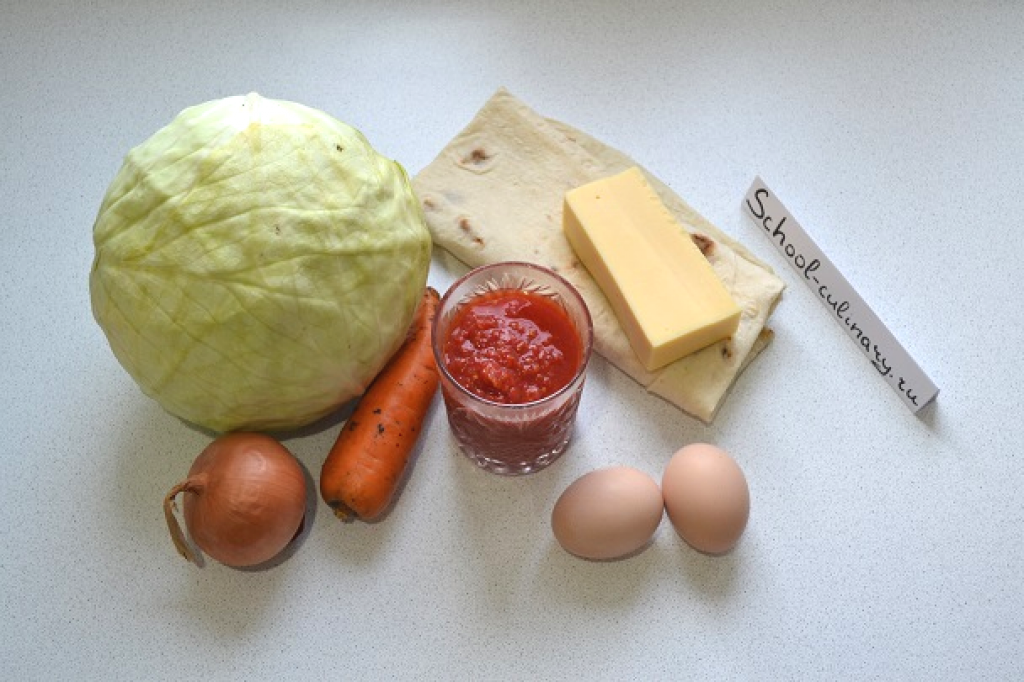 Для тех, кто любит несладкую домашнюю выпечку, но не умеет работать с тестом, хочу предложить очень классный вариант, как приготовить пирог из лаваша с капустой. Сочная начинка, хрустящая сырная корочка – невозможно устоять, и не съесть еще кусочек. Ингредиенты: Приготовление: Ингредиентов не много, и они довольно простые. Для начала очистите, измельчите и обжарьте до прозрачности лук. После добавьте тертую морковь, шинкованную капусту и томат. Тушите капусту на среднем огне, пока не испарится вся жидкость. Обязательно посолите и поперчите. Параллельно можно заняться заливкой. В глубокую мисочку вбейте 2 яйца. Добавьте половину тертого сыра. И пару ложек сметаны. Все тщательно взбейте до однородности. Каждый лист лаваша разделите на 3 части (можно на 2 или на 4, в зависимости от размера формы). Выложите лист на дно жаропрочной формы. Распределите ровным слоем небольшое количество капусты. Повторите слои. Верхний лист лаваша должен быть без капусты. Также аккуратно подверните края ниж