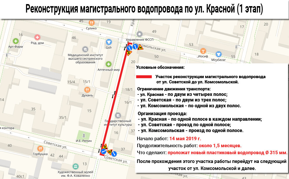 Реконструкцию водопроводных сетей выполнят на участке от ул. им. Пушкина до ул. им. Буденного. Этапы и сроки работ на центральной улице города и связанные с этим ограничения движения транспорта утром во время утреннего рабочего объезда глава столицы Кубани Евгений Первышов обсудил с генеральным директором ООО «Краснодар Водоканал» Дмитрием Павлюченко. — Улучшение состояния и качества работы системы водоснабжения, в целом развитие инженерной инфраструктуры — одна из ключевых для города задач. Это касается как строительства новых объектов, так и модернизации существующих. Особенно — в историческом центре, где основная часть коммуникаций построена много десятилетий назад и давно нуждается в замене. Рассчитываю, что обновление системы водоснабжения значительно улучшит качество воды в домах жителей центральной части города, — сказал Евгений Первышов. Как добавил Евгений Первышов, для комплексной замены инженерных коммуникаций, в целом модернизации системы водоснабжения и водоотв