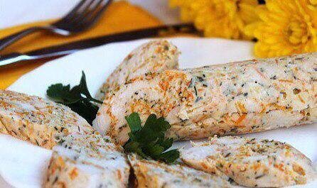 Колбаса из куриного филе с овощами Итого на 100 грамм 91 ккал Б/Ж/У 16 / 1.6 / 2.1 Ингредиенты: Куриное филе - 2 шт Яйцо - 1 шт Молоко 1% - 70 г Морковь - 2 шт Чеснок - 5 г Укроп - 15 г Специи - по вкусу Соль, перец - по вкусу Приготовление: Начинаем с того, что размораживаем филе или отделяем его от грудинной кости. Нарезаем филе кусочками и перемалываем в блендере. Добиваться фарша однородной консистенции не стоит, пусть в нём останутся небольшие кусочки курочки. Перекладываем в миску, вбиваем яйцо и вливаем молоко комнатной температуры, перемешиваем. Очищенную и вымытую морковь трём на тёрке чуть меньше средней. Она не только сделает колбаску вкуснее, но придаст ей цвета. Кстати, для «разукрашивания» домашней колбасы можете ещё добавить немного сока свёклы. Следом режем тонкими дольками чеснок и добавляем зелень. Солим, тщательно перемешиваем. Отрываем кусок фольги и на край выкладываем половину получившегося фарша. Можете разделить его на 3 части, и тогда у вас в