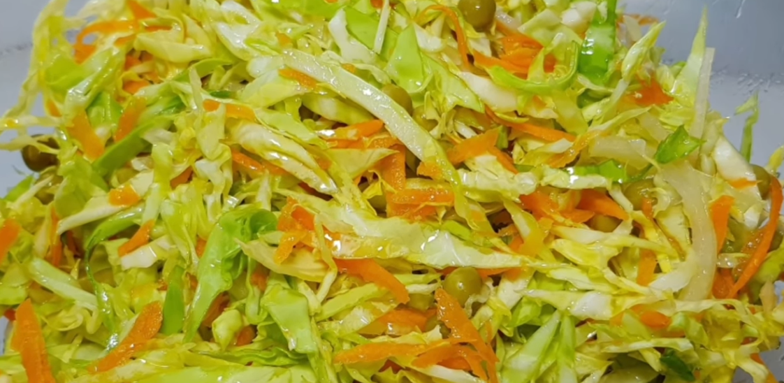 Этот простой и быстрый салат вы можете готовить хоть каждый день. Всего три ингредиента в таком сочетании подарят приятные вкусовые ощущения и безусловную витаминную пользу. Состав: - Вилок свежей капусты 400-500 граммов. - Репчатый лук и свежая морковка по 1 шт. - Горошек консервированный 1 банка (200 граммов). - Масло растительное и соль по вкусу. Шинкуем небольшой вилок капусты и отправляем в глубокую салатную емкость.Лук режем тонкими полукольцами, морковку трем на крупной терке и добавляем эти овощи в посуду к капусте. Далее добавляем горошек, солим по вкусу, и слегка поливаем растительным маслом. Все перемешиваем, и можно подавать на стол. Вот такой вкуснейший простой и быстрый салат получается буквально за 7-10 минут. Пользуйтесь рецептом на здоровье, и приятного вам аппетита! Заходите на наш сайт Вкусные рецепты - Пальцы съешь! в нем вы найдете еще больше разнообразных рецептов с фото на любой вкус. Если нравятся рецепты, жмите "Палец вверх", пишите комментарии. Подписывайтесь