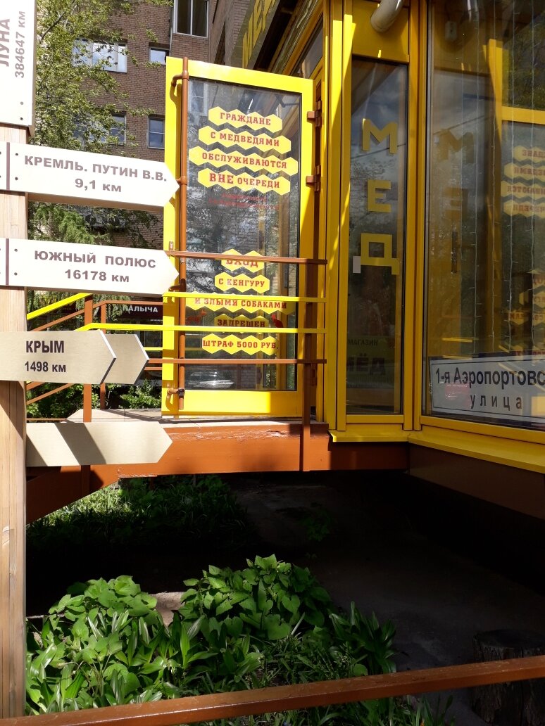 Бывает, приходиться долго передвигаться по Москве пешком, и попадаются всякие странности и интересности. Я решил их фотографировать и делиться с вами, подписчиками моего канала. Давайте улыбаться и удивляться вместе! Вот, например, вход в магазин, где продают мед. Ну, как тут просто пройти мимо! А это, наверное, единственный на планете памятник очкарикам. Я бы еще эпитафию добавил, типа, - "Всем героически погибшим грызунам гранита науки посвящается..." Ведь находится памятник в подмосковном наукограде - Троицке. Иду это я как-то по обыкновенному спальному району. Вокруг обычные пятиэтажки и прочий серый архитектурный соцрелизьм... Скукота, короче. Выхожу, а из-за угла навстречу, на горизонте такое! Подумалось, инопланетяне приземлились что ли? А это я по мотивам посещения московских супермаркетов придумал. Типа , вот это действительно жесткая мотивация! Друзья! Подписывайтесь на мой канал и я буду постоянно вас чем нибудь удивлять.