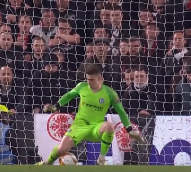 В полуфинальном матче Лиги Европы, между командами "Челси" и "Айнтрахт", исход матча завершился серией пенальти. После удара Хинтереггера "Айнтрахт", вратарь "Челси", Кепа умудрился словить мяч правым коленом, прижав мяч к газону. Видео обзоры полуфинальных матчей между командами: "Челси" - "Айнтрахт" и "Валенсия" - "Арсенал" смотрите - ЗДЕСЬ>>>>