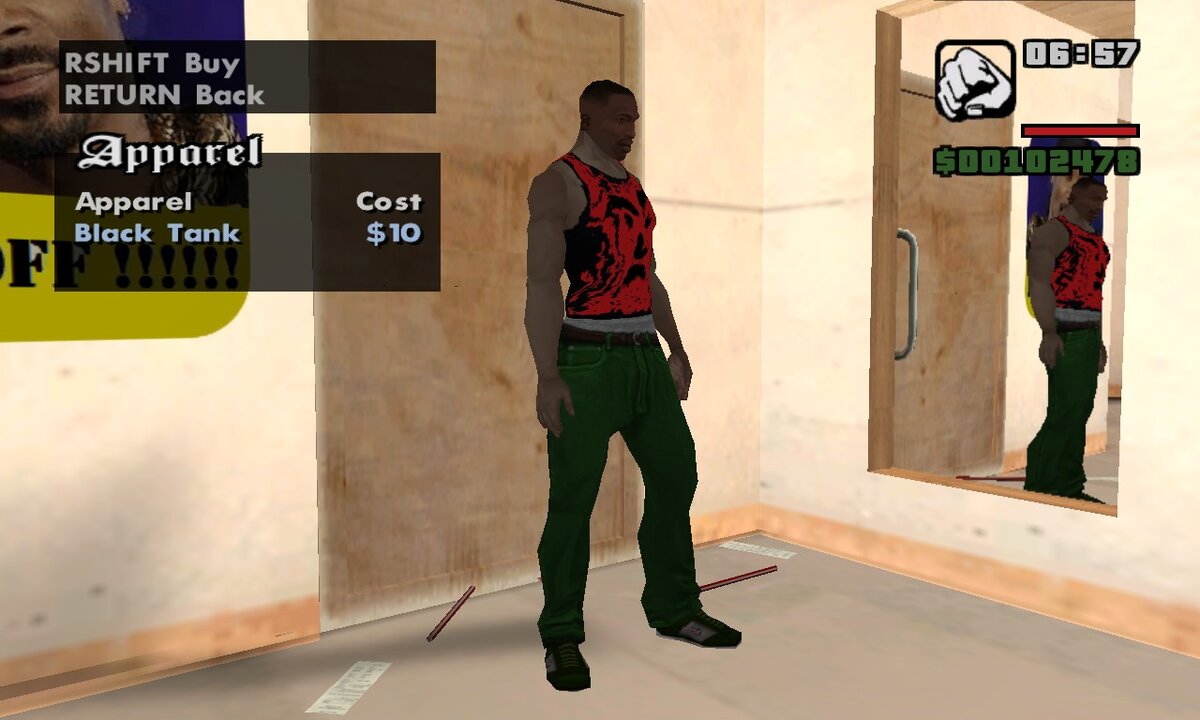Я не знаю ни одного молодого человека или девушку, кто бы не слышал о культовой игре GTA San Andreas. На 2006 год это было просто что-то за гранью понимания. Огромный открытый игровой мир, в котором можно: есть, стричься, играть в приставки, танцевать в клубах, грабить и даже менять одежду! Мой путь стилиста начался именно здесь. У девчонок был Sims, а у меня GTA. Игровой персонаж CJ, он же Карл Джонсон, тот ещё модник, и со вкусом у него проблемы. Ему даже делает замечание Райдер, если Карл сделает нелепую стрижку. Так давайте подберем Карлу три образа, в котором он будет чертовски неотразим. 1)Техно Кобра Так-с. Действие игры происходит в 1992. Так 90ые это ж золотой век техно тус. Извини Карл, но Ганста рэп умрет через пару лет с Тупаком. А мы должны быть актуальны как можно дольше. Идём в ближайший от дома секонд Binco и меряем все что попадётся на глаза. Карл же должен ходить в чем-то на дискотеку? Так и выбираем максимально кислотный образ. Черная майка с красными разводами.