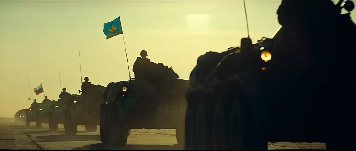 Тем временем, колонне ВДВ всячески ставят в палки в колёса, причём свои же - попытки остановить батальон действительно были, но храбрым генералам всегда было плевать на штабных крыс: “Я трусливых приказов не выполняю”. В рамках фильма вынужденная задержка нагнетает драмы: а успеет ли колонна? а вдруг отряд Бека перебьют, а аэропорт захватят? Кучка боевиков для озлобленной десантуры это конечно так, прожевать и плюнуть, но ведь могут погибнуть не только персонажи, но и гражданские. Меня, скажем так, это не проняло, но я в принципе кинематограф не люблю и не воспринимаю, однако посыл понятен.
