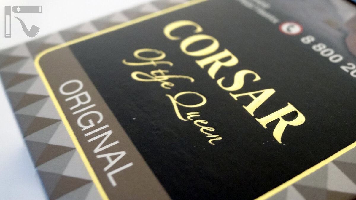 Corsar of The Queen Original - это один из четырёх сортов линейки ароматизированных сигарет и по задумке блендеров Погара, это не ароматизированный сорт. За всё время выпуска Corsar менял дизайн пачки раза три или четыре, но оформление всегда было ярким, оригинальным и запоминающимся. Сейчас эти сигареты упаковываются в коробку из средней плотности картона, с прямыми углами. Дизайн упаковки Original самый сдержанный и выполнен в кофейных тонах. Центральную часть композиции неизменно занимает чёрное поле с золотистым росчерком имени бренда, а ниже, в более простом шрифте, наименование сорта.