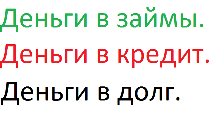 Деньги в займы,деньги в долг,деньги в кредит в чём разница?