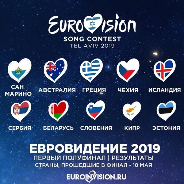 14 мая стартовало Евровидение 2019. По итогам первого полуфинала прошли: Австралия, Беларусь, Греция, Исландия, Кипр, Сан-Марино, Сербия, Словения, Чехия, Эстония. За бортом остались: Бельгия, Венгрия, Грузия, Польша, Португалия, Финляндия, Черногория. Второй полуфинал был поинтересней, в котором выступал наш россиянин. В итоге в финал прошли: Азербайджан, Албания, Дания, Мальта, Нидерланды, Норвегия, Россия, Сев. Македония, Швейцария, Швеция. За бортом оказались: Австрия, Армения, Ирландия, Латвия, Литва, Молдова, Румыния, Хорватия. Интрига этого Евровидения просто зашкаливает! Ещё в январе на победу Сергея Лазарева с песней "Scream" кф был 3,50. Фаворит по мнению букмекеров. Успел даже поставить 10 000 рублей, думал кф упадёт ещё больше к началу, но нет! Вырос до 17!!! 17 КАРЛ! Сейчас же, неожиданно делают главным фаворитом голландского музыканта-певца (Дункан Лоуренс) с песней Arcade. Кф после полуфиналов с 3,50 упал до 1,70. Перевод песни Arcade словами самого Дункана: Любовь мо