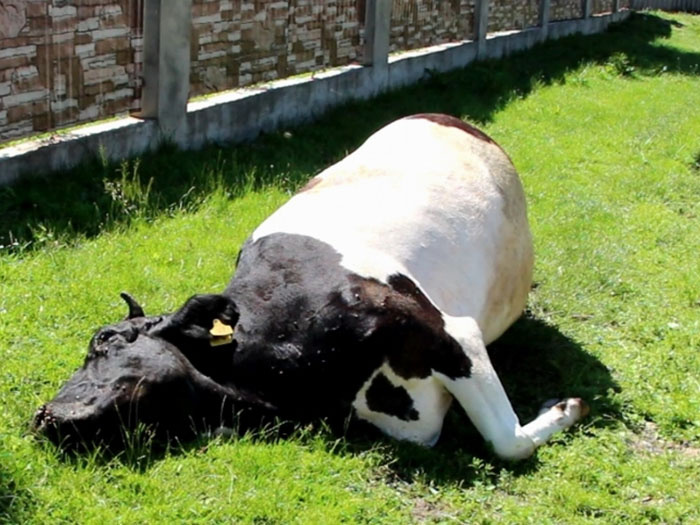 Причины болезни Лечение и экстренная помощь Если у теленка вздулся живот, лечение нужно начинать немедленно, в противном случае летальный исход может наступить уже через несколько часов. Если симптомы асфиксии ещё не столь выражены, можно попытаться удалить газы следующими способами: Чтобы замедлить или прекратить процессы брожения в желудке, применяют различные средства, например, дают выпить бурёнке: Не болейте, дорогие друзья.