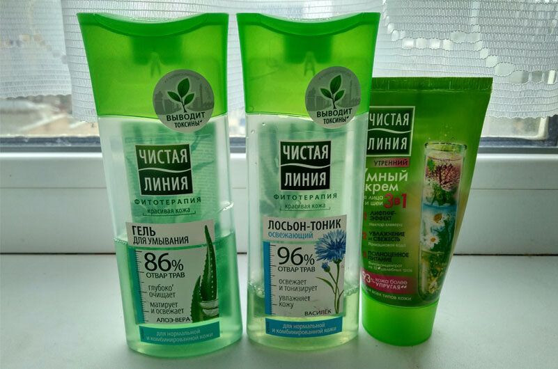 Итак, представляю вашему вниманию незаменимую «тройку» от «Чистой линии» по уходу за нормальной и комбинированной кожей лица.