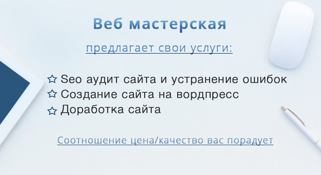 Если вы пока ещё не сильны в seo оптимизации сайта, и не понимаете, какой именно нужно подключить функционал к вашему сайту, вы можете заказать данную услугу в Веб мастерской. Мы оперативно проведём seo анализ и устраним все ошибки. Так же подключим нужный функционал, и удалим всё лишнее, чтобы ваш сайт не тормозил, а летал, словно имеет реактивный двигатель.