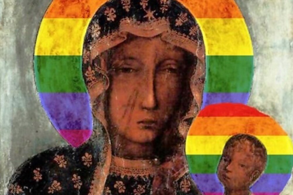 Польская полиция сообщает, что Эльжбета Подлесна установила плакаты с изображением почитаемой Черной Мадонны, на которой изображены Дева Мария и Иисус с радугами от флага ЛГБТ в качестве ореолов. Теперь ей грозит два года тюрьмы за оскорбление религиозных чувств. Полиция утверждает, что 51-летняя Подлесна установила плакаты в небольшом городе Плоцк, Польша. И они говорят, что нашли еще больше плакатов, когда обыскали ее машину и дом. Подлесна была задержана властями, когда она вернулась из адвокатского тура Международной Амнистии. В результате обысков прокуратура обвиняет ее в оскорблении религиозных чувств. И эти обвинения означают, что Подлесну грозит до двух лет тюрьмы, если ее признают виновным. Обычно в соответствии с польским законодательством незаконно сообщать имя подозреваемого до окончания судебного разбирательства. Но полиция говорит, что они просто применяют закон, как в предыдущих инцидентах. «Никакой каприз свободы и« толерантности »не дает никому права оскорблять чувства