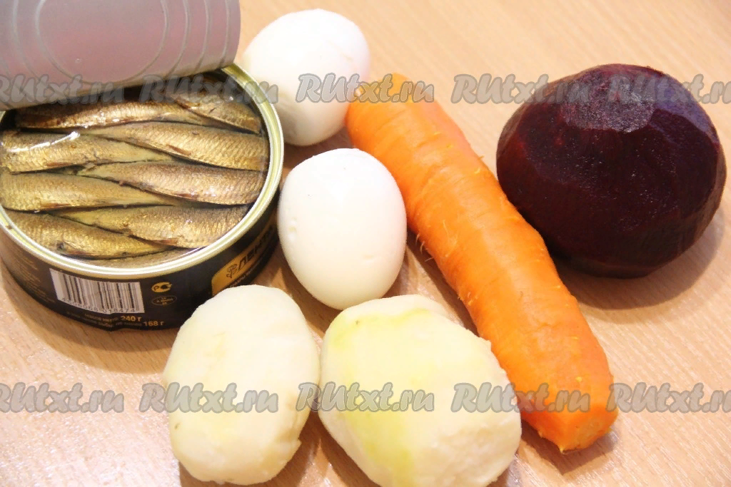 Для приготовления салата "Шпроты под шубой" нам потребуется: