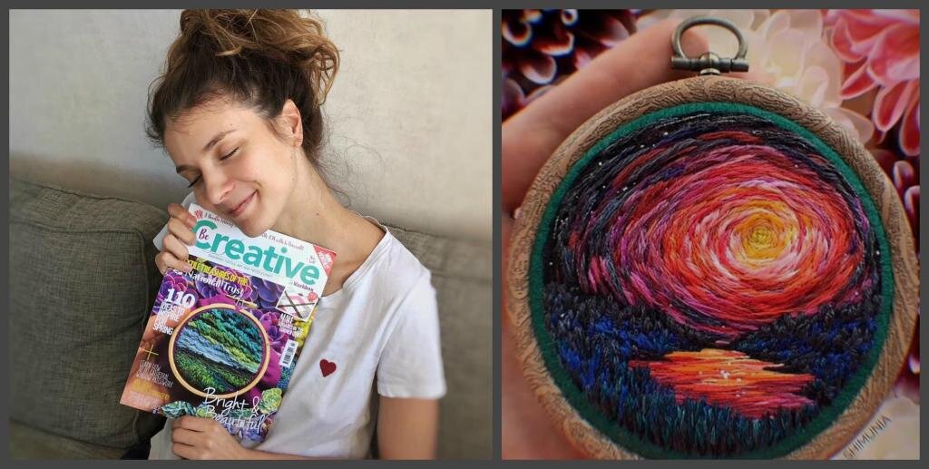 Творческие люди отличаются особенной фантазией. Художники часто хотят удивить своих поклонников необычными решениями и яркими формами. Вера Шимун относится именно к таким людям. Эта художница живет в Санкт-Петербурге и радует зрителей необычными картинами из ниток, на которых изображены природные ландшафты. О работах художницы Работы Веры необычайно реалистичны. Это возможно благодаря тщательно подобранным оттенкам ниток. Недавно девушка соединила свои картины с настоящими фотографиями. Поклонники были шокированы, насколько правдоподобно выглядят ее шедевры. Стоит отметить, что все работы художницы очень маленькие и помещаются на ладони. Вера Шимун делится своими произведениями в социальных сетях и уже имеет достаточное количество подписчиков, которые с нетерпением ждут новых невероятных работ. Все картины девушка делает вручную. Она создает их при помощи цветных ниток и иголок. Пейзажи получаются захватывающими и нежными. Талант Девушку часто спрашивают о времени, которое она зат