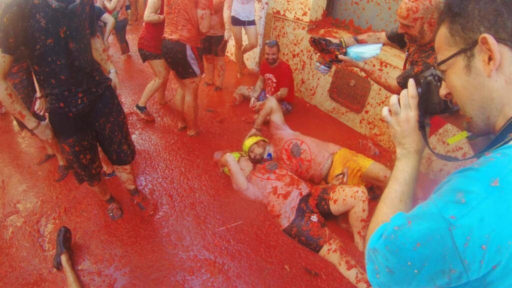 Фестиваль La Tomatina проходит каждый год в Буньоле под Валенсией. Проводится этот праздник в последнюю среду августа, хотя вечеринки начинаются с начала недели. Самым главным событием является томатная битва, которая проходит с 11.00 до 13.00. Это событие считается одним из самых ярких летних фестивалей в Испании, когда тысячи людей съезжаются в небольшой городок для посещения этого удивительного события. История фестиваля Происхождение фестиваля La Tomatina неизвестно, однако существует несколько теорий, как именно появилась традиция боя помидорами. Наиболее правдоподобное объяснение датируется 1945 годом, когда по улицам Буньола проходил ежегодный парад огромных фигур с большими головами. Некоторые молодые люди пытались присоединиться к параду и случайно опрокинули одного из участников парада, который встал на ноги и стал качаться в стороны. Молодые люди взяли несколько помидор из рядом расположенной овощной лавки и начали кидать в него, пока не приехала полиция и всех не разогн