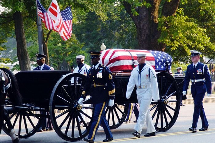Практически невозможно найти кадры того, что было символической кульминацией похорон Рональда Рейгана – той их части, что была выстроена как спектакль, изобиловала мистическими и иллюминатскими знаками. Вот вроде бы велась прямая трансляция этой церемонии – если память не врёт, даже по каким-то российским телеканалам, - а найти запись ее на ютьюбике ну никак невозможно. Многочасовую церковную службу – пожалуйста; кадры прощания в ходе «трупного тура» Рейгана по Штатам – сколько угодно; желаете приносящих соболезнования коллег, товарищей и подельников – извольте. А вот следование траурного кортежа по улицам Вашингтона – хренушки, не сыскать, только в виде любительских фотоснимков.