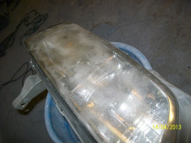 Номер 2000 – почти финишная обработка, т.к. для полироли он тяжеловат, и она не справится с располировкой ее следов, а вот сделать «риску» намного меньше, она способна как никуда лучше. На финишном этапе, при обработке поверхности бумагой Р2500, стоит отдать больше терпения и приложить больше усилий. Это последний номер, после обработки которым, не должно остаться следов от предыдущих номеров, а поверхность будет практически глянцевая, и через стекло, хоть и мутноватое от замывки, можно более четко просмотреть отражатель фары.