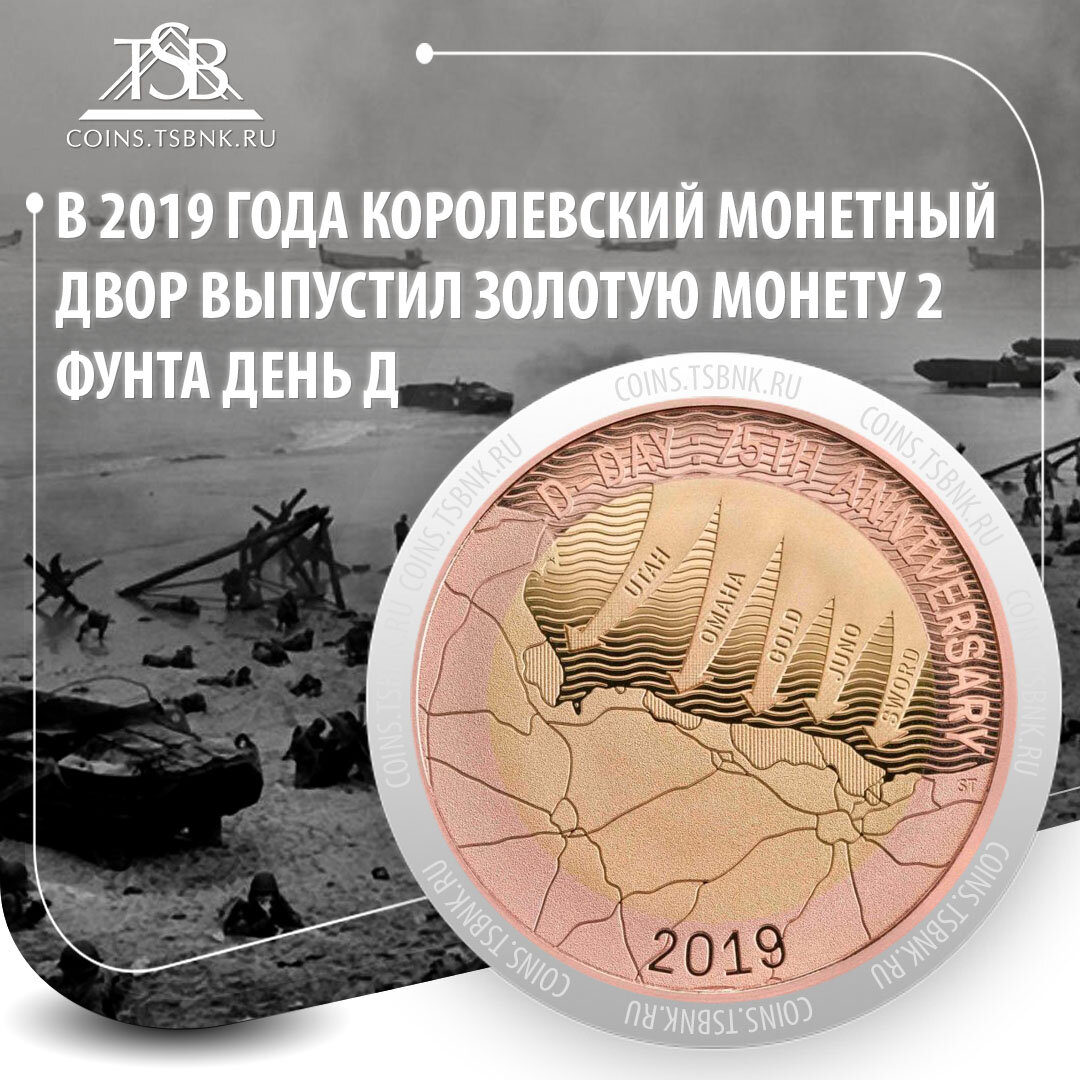 Монетный двор Великобритании выпустил золотую монету номиналом 2 фунта посвященную к 75-летию на высадки союзнических войск в Нормандии. Это событие вошло в историю как “День Д”. 6 июня 1944 года Войска союзников численностью 156000 солдат из Великобритании, США и Канады высадились на побережье Франции. Это была самая крупная в мировой истории морская десантная операция по освобождению прибрежной зоны от противника. Помимо внушительного десанта компанию поддерживала 195700 моряков и порядка 7000 единиц боевой техники. В результате операции союзникам удалось захватить практически всю береговую полосу и продвинуться в глубину до 5 км. По случаю юбилейной даты Королевский Монетный двор выпустил золотую монету номиналом 2 фунта. Монета 2 фунта “День Д”: На аверсе центральная части монеты расположен портрет Ее Величества Королевы Елизаветы II, во с традиционным разворотом вправо. Внешний Круг монеты содержит надпись «ELIZABETH II • D • G • REG • F • D • 2 POUNDS •» На реверсе монеты изобраз