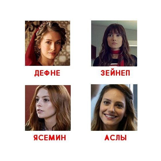 Дефне/Defne Имя Дефне в переводе с турецкого имеет значение "залив". Девушки с таким именем отличаются импульсивностью и упрямством. Они хотят доказать, что все могут сделать самостоятельно. Обладательницы этого имени проницательные и смелые. Какая героиня, на ваш взгляд, подходит к этому описанию? Зейнеп/Zeynep Зейнеп имеет значение "свет" и "красота". Имя очень популярное в Турции (не только в сериалах). Девушкам с таким именем присуще лидерство, прямолинейность и упорство. Зейнеп достигает успеха, если ставит перед собой четкую задачу. Не удивительно, что это имя обычно у главных героинь в сериалах. Ясемин/Yasemin Легко догадаться, что это имя переводится как "цветок жасмина". Имя имеет арабское происхождение. Как правило, Ясемин - это яркая и эмоциональная девушка, которое придает большое значение внешнему виду. Аслы/Asli В переводе "настоящая", "истинная". Родители так называют дочь, если хотят, чтоб она выросла искренним и прямолинейным человеком. Аслы всегда готова прийти